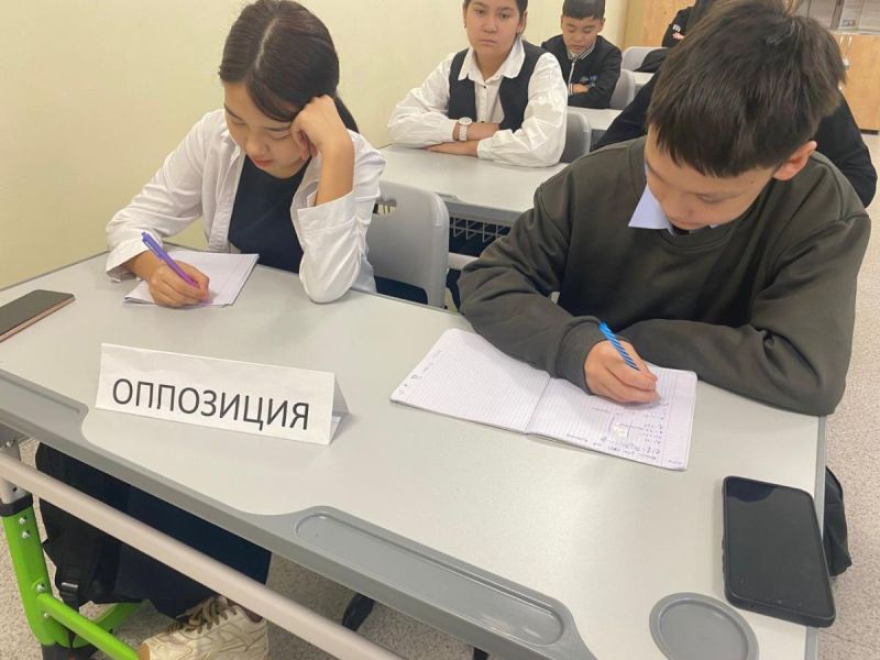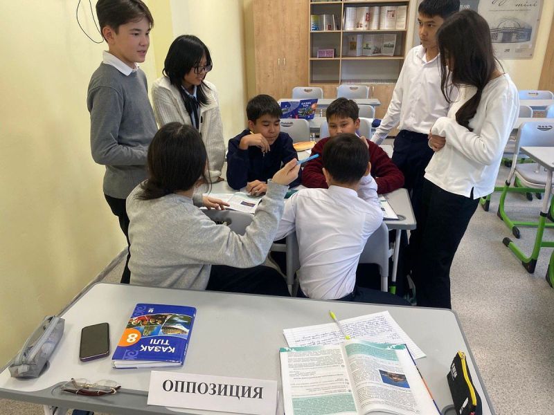 8 Ә сынып оқушыларымен «Латын әліпбиіне көшу – заман талабы ма?» атты тақырып аясында пікірсайыс өткізілді.